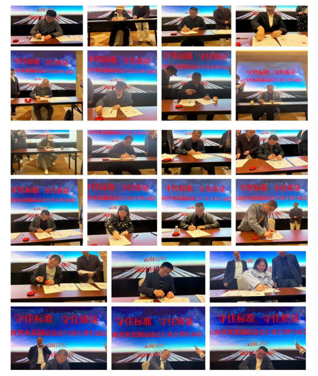 會上代表們充分討論,相互交換意見。會長、副會長、云南各地龍頭企業負責人率先帶頭表態,嚴格按照標準生產管道,與會各企業代表經過充分溝通交流之后,對“既要保訂單、更要保質量”達成高度一致,形成《云南省水泥制品協會行業自律書》,后在與會代表的共同鑒證下,各企業法人代表,莊重地在《自律書》上簽字蓋章。
